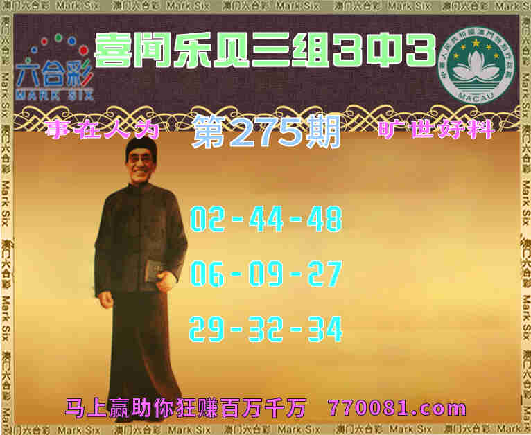 275期:【喜闻乐见】 👈三组3中3👈