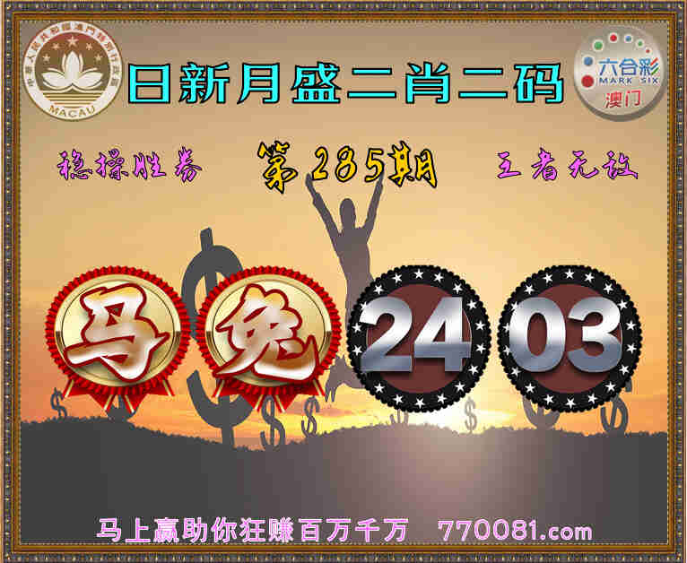 285期:〖日新月盛〗 🚣二肖二码🚣【马兔】【24.03】开:马24准