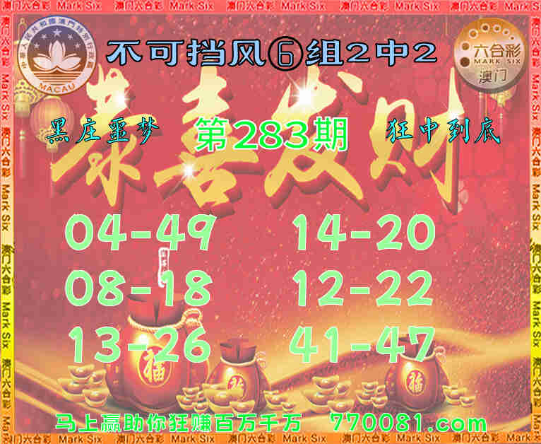 283期:〖不可挡风〗 🏅⑥组2中2🏅【04-49】【12-22】【13-26】
