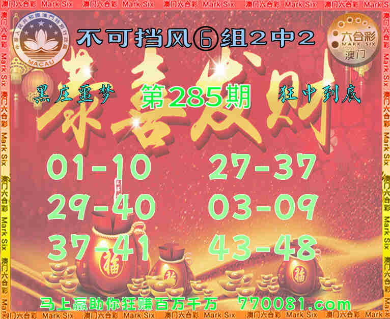 285期:〖不可挡风〗 🏅⑥组2中2🏅【01-10】【03-09】【37-41】