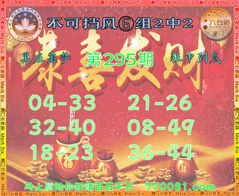 295期:〖不可挡风〗 🏅⑥组2中2🏅【04-33】【08-49】【18-23】