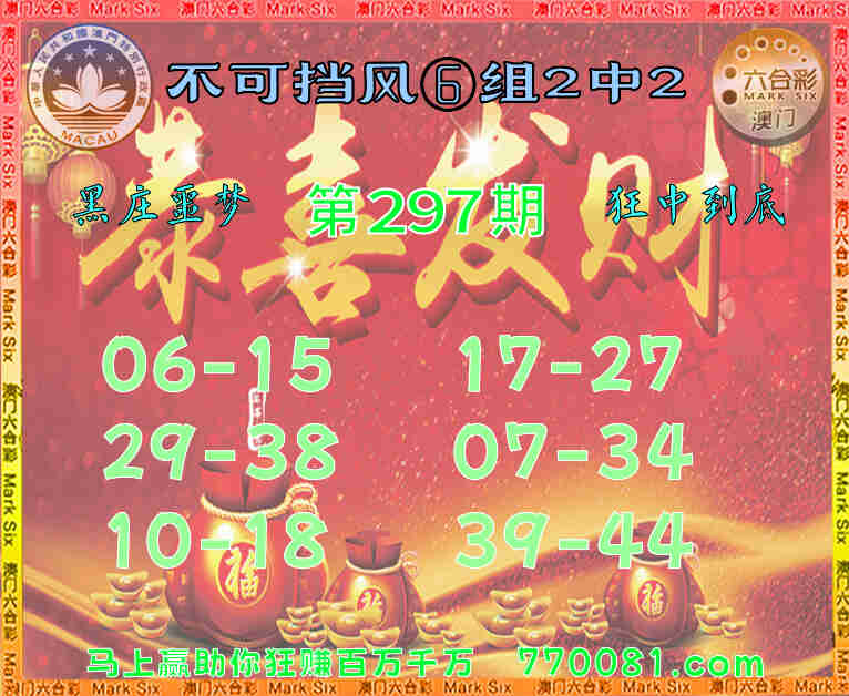 297期:〖不可挡风〗 🏅⑥组2中2🏅【06-15】【07-34】【10-18】