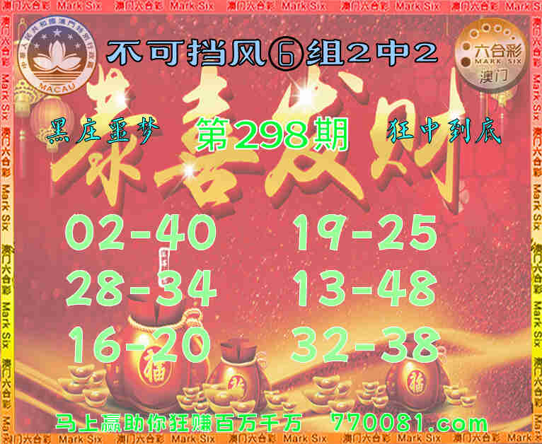 298期:〖不可挡风〗 🏅⑥组2中2🏅【02-40】【13-48】【16-20】