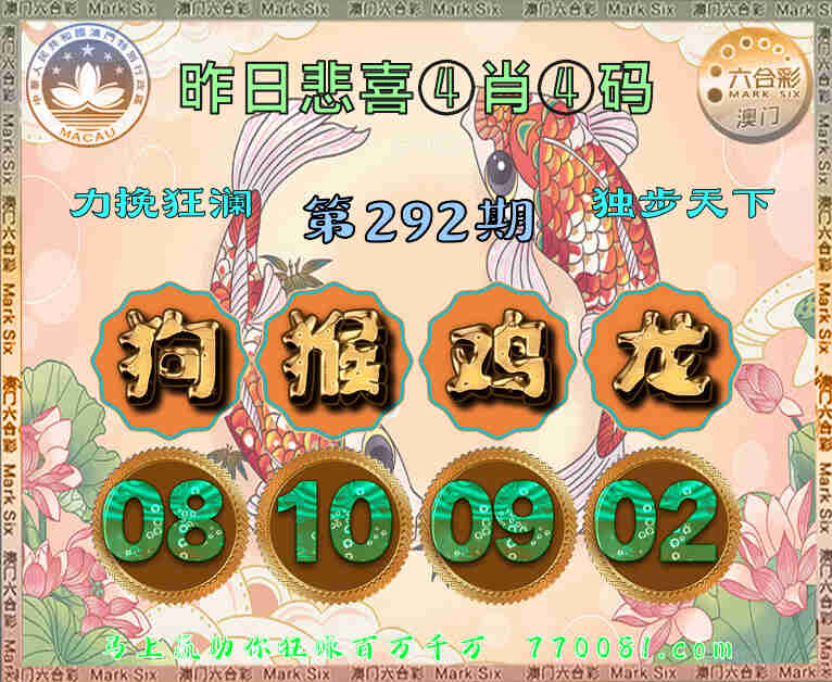 292期:【昨日悲喜】 🏄♀️④肖④码🏄♀️【狗猴鸡龙】【08.10.09.02】开:龙02准