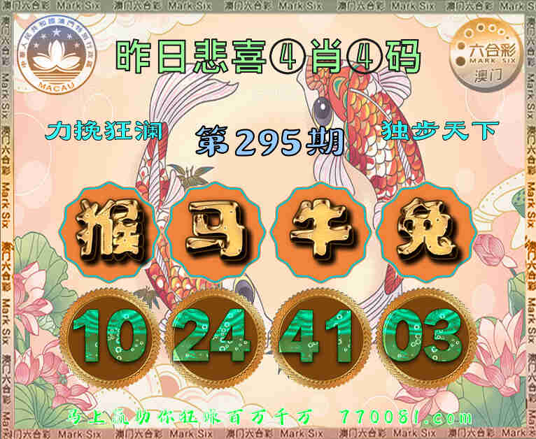 295期:【昨日悲喜】 🏄♀️④肖④码🏄♀️【猴马牛兔】【10.24.41.03】开:牛05准
