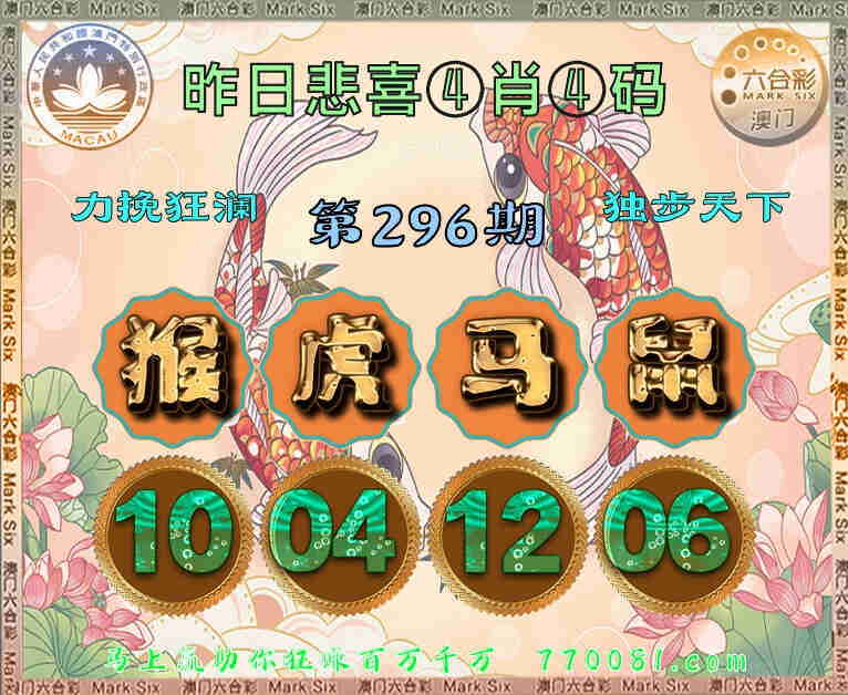 296期:【昨日悲喜】 🏄♀️④肖④码🏄♀️【猴虎马鼠】【10.04.12.06】开:猴22准