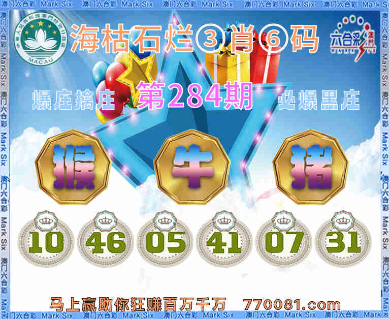 284期:〖海枯石烂〗🎀③肖⑥码🎀【猴牛猪】开:牛41准【10.46.05.41.07.31】