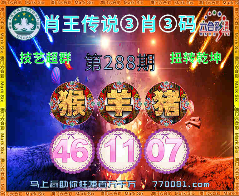288期:〖肖王传说〗 🐓③肖③码🐓【猴羊猪】【46.11.07】开:龙14错