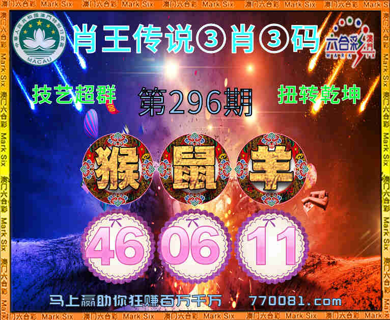 296期:〖肖王传说〗 🐓③肖③码🐓【猴鼠羊】【46.06.11】开:猴22准