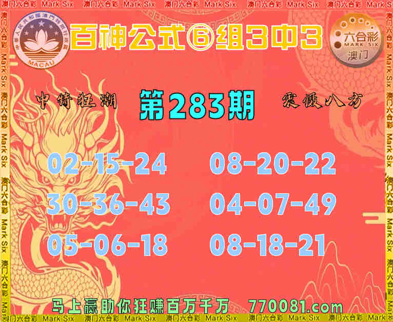 283期:【百神公式】 🚲⑥组3中3🚲【02-15-24】【04-07-49】【05-06-18】