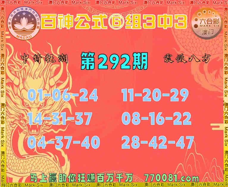 292期:【百神公式】 🚲⑥组3中3🚲【01-06-24】【08-16-22】【04-37-40】