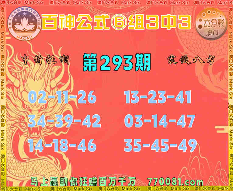 293期:【百神公式】 🚲⑥组3中3🚲【02-11-26】【03-14-47】【14-18-46】