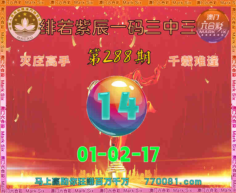 288期:《绯若紫辰》 ♣️一码三中三 ♣️一码中特【14】三中三【01-02-17】