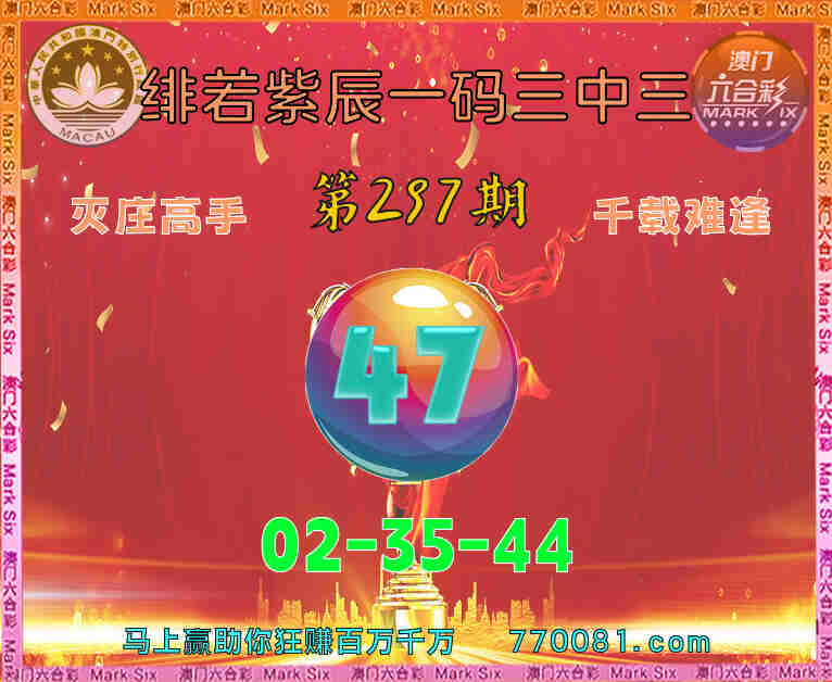 293期:《绯若紫辰》 ♣️一码三中三 ♣️一码中特【47】三中三【01-11-46】