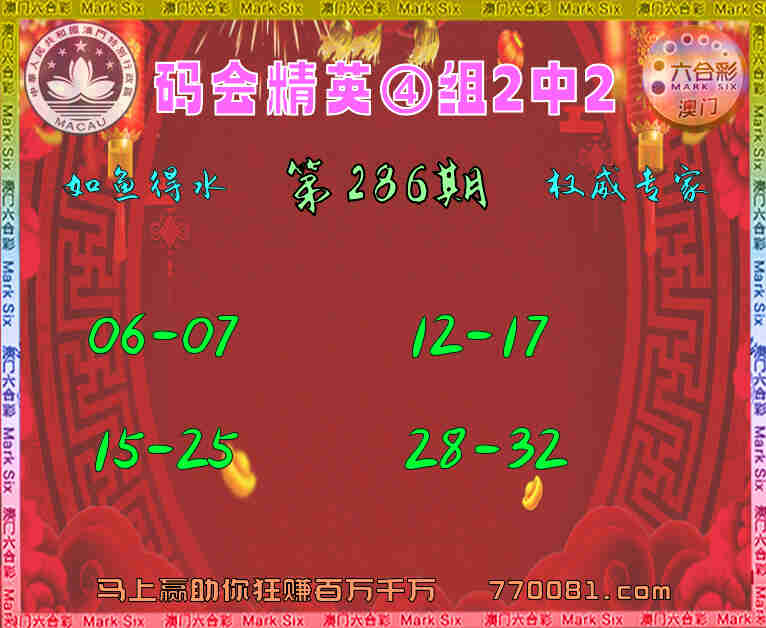 286期: ♣️『码会精英』 ♣️④组2中2 ♣️【06-07】【12-17】