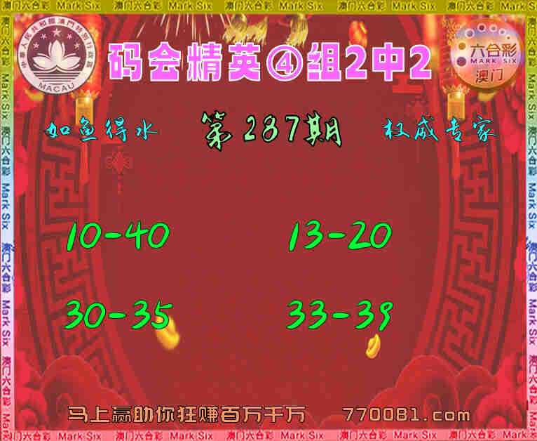 287期: ♣️『码会精英』 ♣️④组2中2 ♣️【10-40】【13-20】