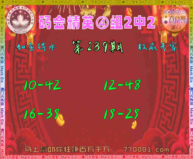 289期: ♣️『码会精英』 ♣️④组2中2 ♣️【10-42】【12-48】