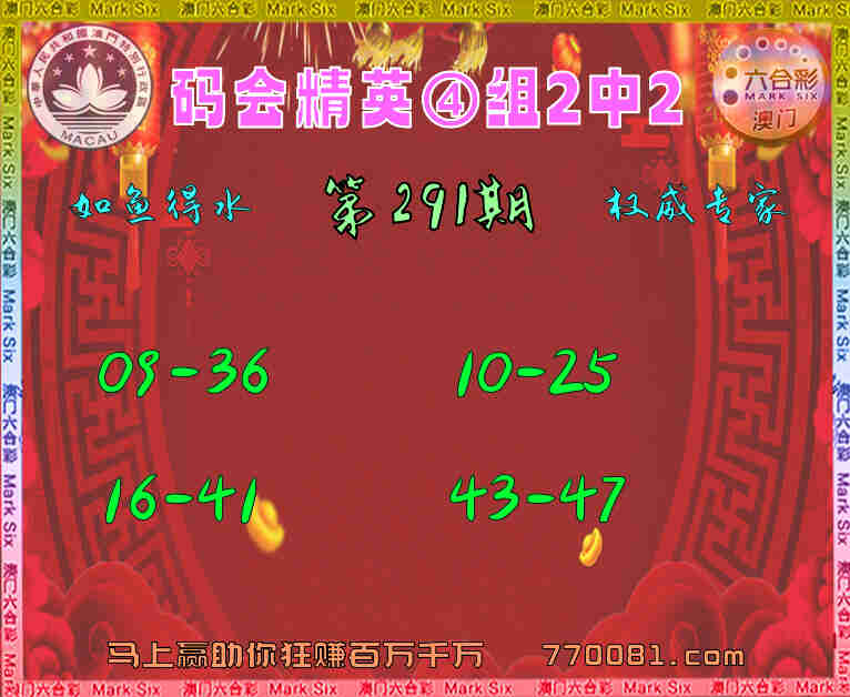 291期: ♣️『码会精英』 ♣️④组2中2 ♣️【09-36】【10-25】