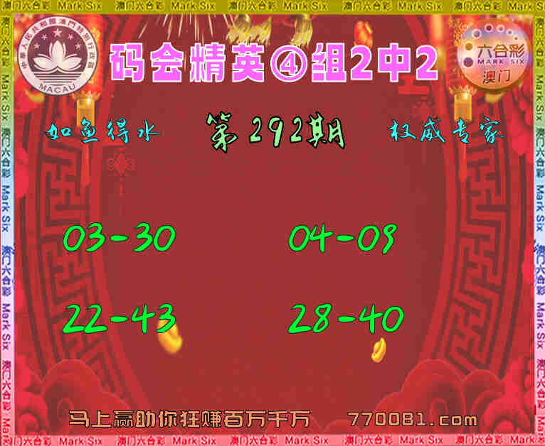 292期: ♣️『码会精英』 ♣️④组2中2 ♣️【03-30】【04-09】