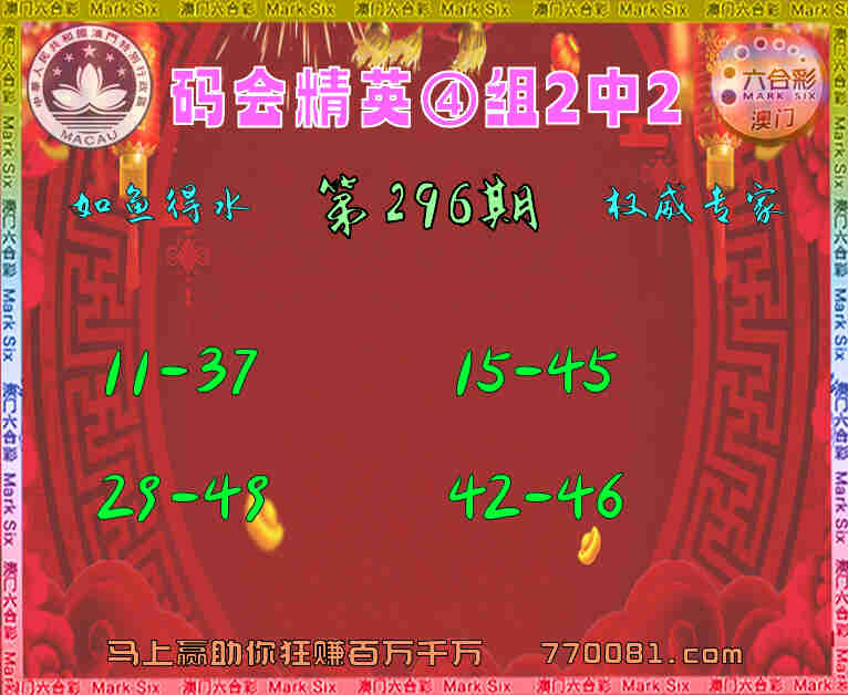 296期: ♣️『码会精英』 ♣️④组2中2 ♣️【11-37】【15-45】