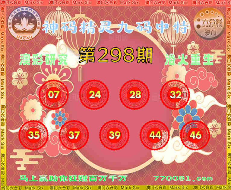 298期:『神码精灵』 🍎九码中特🍎开:00准【07.24.28.32.35.37.39.44.46】