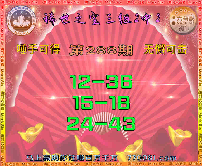 288期:【稀世之宝】 🍗三组2中2🍗【12-36】【15-18】【24-43】