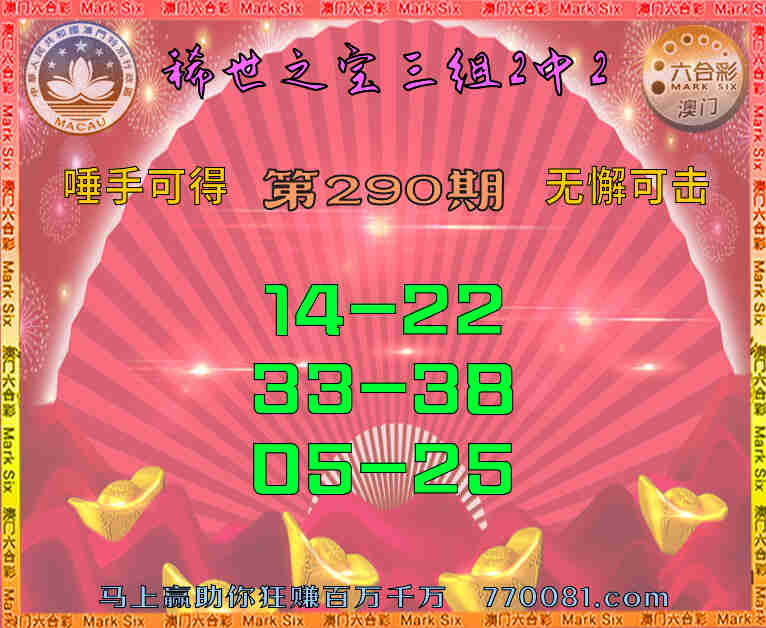290期:【稀世之宝】 🍗三组2中2🍗【14-22】【33-38】【05-25】