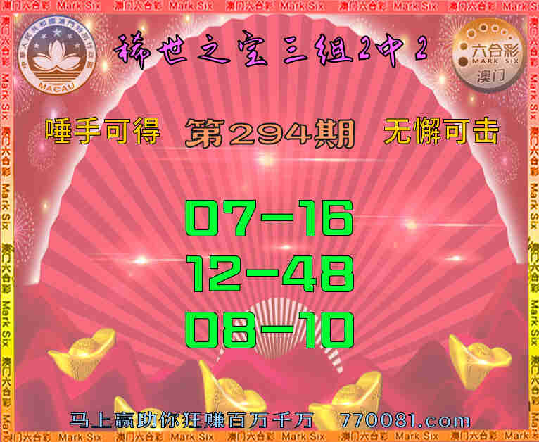 294期:【稀世之宝】 🍗三组2中2🍗【07-16】【12-48】【08-10】